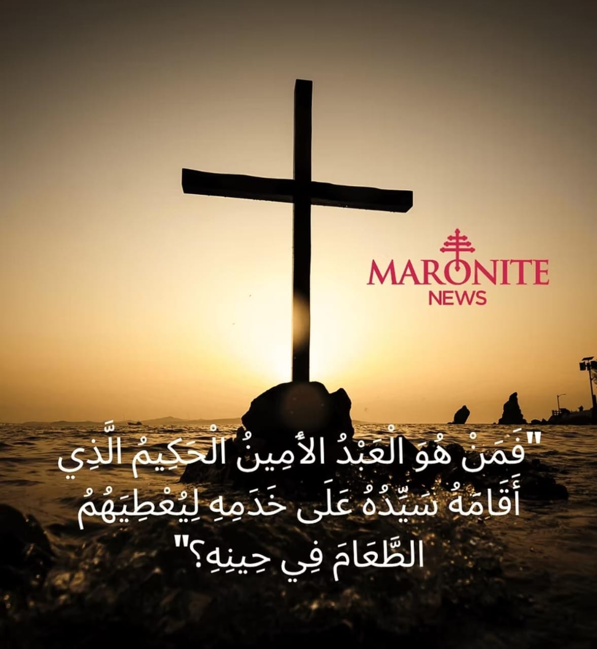 قالَ الرَّبُّ يَسُوع : «مَنْ هُوَ العَبْدُ الأَمِينُ الحَكِيمُ الَّذي أَقَامَهُ سَيِّدُهُ عَلَى أَهْلِ بَيْتِهِ، لِيُعْطِيَهُمُ الطَّعَامَ فِي حِينِهِ ؟ طُوبَى لِذلِكَ العَبْدِ الَّذِي يَجِيءُ سَيِّدُهُ فَيَجِدُهُ فَاعِلاً هَكَذَا ! أَلحَقَّ أَقُولُ لَكُم : إِنَّهُ يُقِيمُهُ عَلَى جَمِيعِ مُمْتَلَكَاتِهِ. ولكِنْ إِنْ قَالَ ذَلِكَ الْعَبْدُ الشِّرِّيرُ فِي قَلْبِهِ : سَيَتَأَخَّرُ سَيِّدِي ! وبَدَأَ يَضْرِبُ رِفَاقَهُ، ويَأْكُلُ ويَشْرَبُ مَعَ السِكِّيرِينَ، يَجِيءُ سَيِّدُ ذَلِكَ العَبْدِ في يومٍ لا يَنْتَظِرُه ، وفي سَاعَةٍ لا يَعْرِفُهَا، فَيَفْصِلُهُ ، ويَجْعَلُ نَصِيبَهُ مَعَ المُرَائِين . هُنَاكَ يَكُونُ البُكَاءُ وصَرِيفُ الأَسْنَان» .