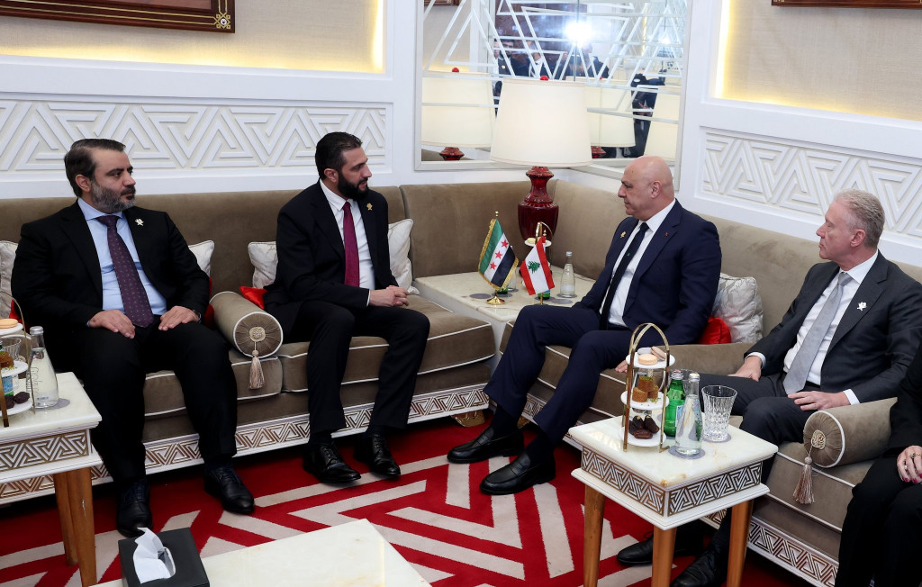كما التقى الرئيس عون الرئيس السوري احمد الشرع، في حضور وزير الخارجية السورية اسعد الشيباني، والوزير رجي وأعضاء الوفد اللبناني، وعرضا العلاقات بين البلدين وسبل تطويرها، وضرورة التنسيق بما يضمن المحافظة على الاستقرار على طول الحدود. كما تطرق البحث الى أهمية التعاون لما فيه مصلحة البلدين، ولا سيما ترسيم الحدود البحرية، وملف النازحين السوريين حيث اعرب الرئيس الشرع عن ارتياحه لبدء عودة مجموعات من النازحين الى الأراضي السورية. كما تناول البحث ضرورة التنسيق فيما خص النقاط التي أثيرت بين الوفدين اللبناني والسوري خلال المحادثات التي أجريت في بيروت في ملف الموقوفين، والتأكيد على أهمية التعاون القضائي بين البلدين للبت في هذا الملف، وفقاً للقوانين المعمول بها.