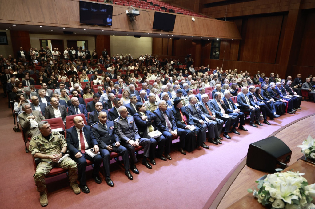 واعتبر أنّ “هذه الكلمة التي هي تعبير عن الفكر، الذي يصنع القانون، هذه الكلمة، التي تدافع عن القانون، هذه الكلمة التي تدافع عن السيادة، هذه الكلمة التي تضمن شرعية الدولة، هذه الكلمة التي كتبها وأعلى من شأنها رجالات دولة وفكر وضمير، هؤلاء الأساتذة والمعلّمين القدوة الذين زادوه علماً ومناقبيّة ومهنيّة وتواضعاً، وعلّموه معنى الوفاء عندما وقفوا في الحفل أمام الجمهور لمناقشة كتاباته، فأعلوا من شأنها. لا لانحدار الكلمة لتصبح نهجاً لتبرير السياسات الفاشلة، أو سلعة يمكن الحصول عليها عبر الذكاء الاصطناعي، أو لتشويه الحقائق، أو للتزلّف، أو للنيل من سمعة الآخر، أو للحملات المسيئة لأصدقاء لبنان، أو لتشويه الخطاب الديني وصولاً إلى خطاب الكراهيّة الذي هو سبب أساسيّ للحروب. إنّ تدجين الديمقراطية يحوّلها إلى ديكتاتورية ممنهجة”.