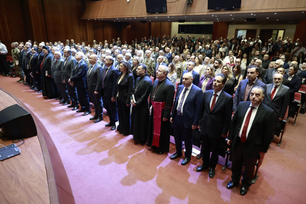 وشدد على أن “الحق بالكرامة مرتبط بالإنسان وبحق الحياة ولا يسقطان بمرور الزمن طالما هو على قيد الحياة”. وتطرّق الى “تعريف شعار بيروت أمّ الشرائع، إذ يمكن للتاريخ أن يعيد نفسه”، مستشهدا بالعلّامة بولينيه الذي قال إنّ مدرسة بيروت للحقوق لم تكن فقط مساوية لمدرسة القانون في روما أو القسطنطينية، بل كانت تتفوّق عليها لأنّها كانت تدرّس القانون باللغتين اليونانية واللاتينية.