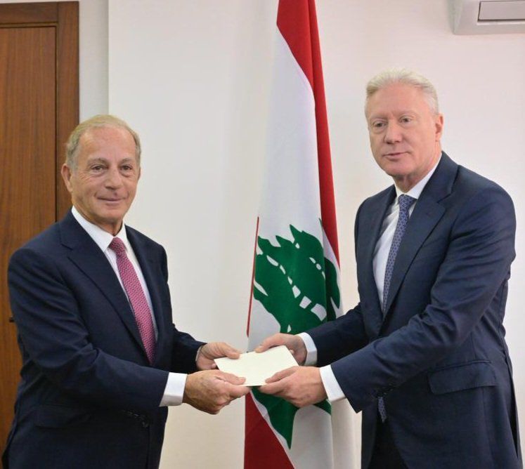 وزير الخارجية يتسلم من سفير الولايات المتحدة الاميركية الجديد ميشال عيسى نسخة من أوراق اعتماده 17/11/2025 وزير الخارجية يتسلم من سفير الولايات المتحدة الاميركية الجديد ميشال عيسى نسخة من أوراق اعتماده ShareShareShare Previous Postفي الذكرى السنوية للشهيد القائد الإعلامي الكبير الحاج محمد عفيف ورفاقه الذين استشهدوا معه يقام احتفال تكريمي يتحدث فيه الامين العام لحزب الله الشيخ نعيم قاسم Next Postوصول الأمير يزيد بن فرحان على متن طائرة خاصة إلى مطار رفيق الحريري الدولي
