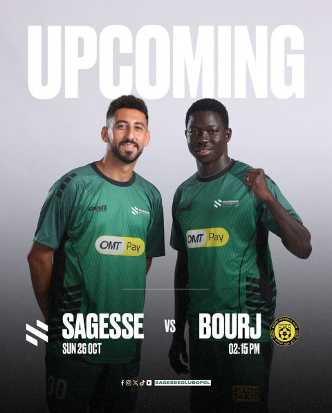 🆚: Sagesse Vs Bourj⏰: Sunday 26 October - 2:15PM📺: FIFA+📍: Fouad Chehab Stadium